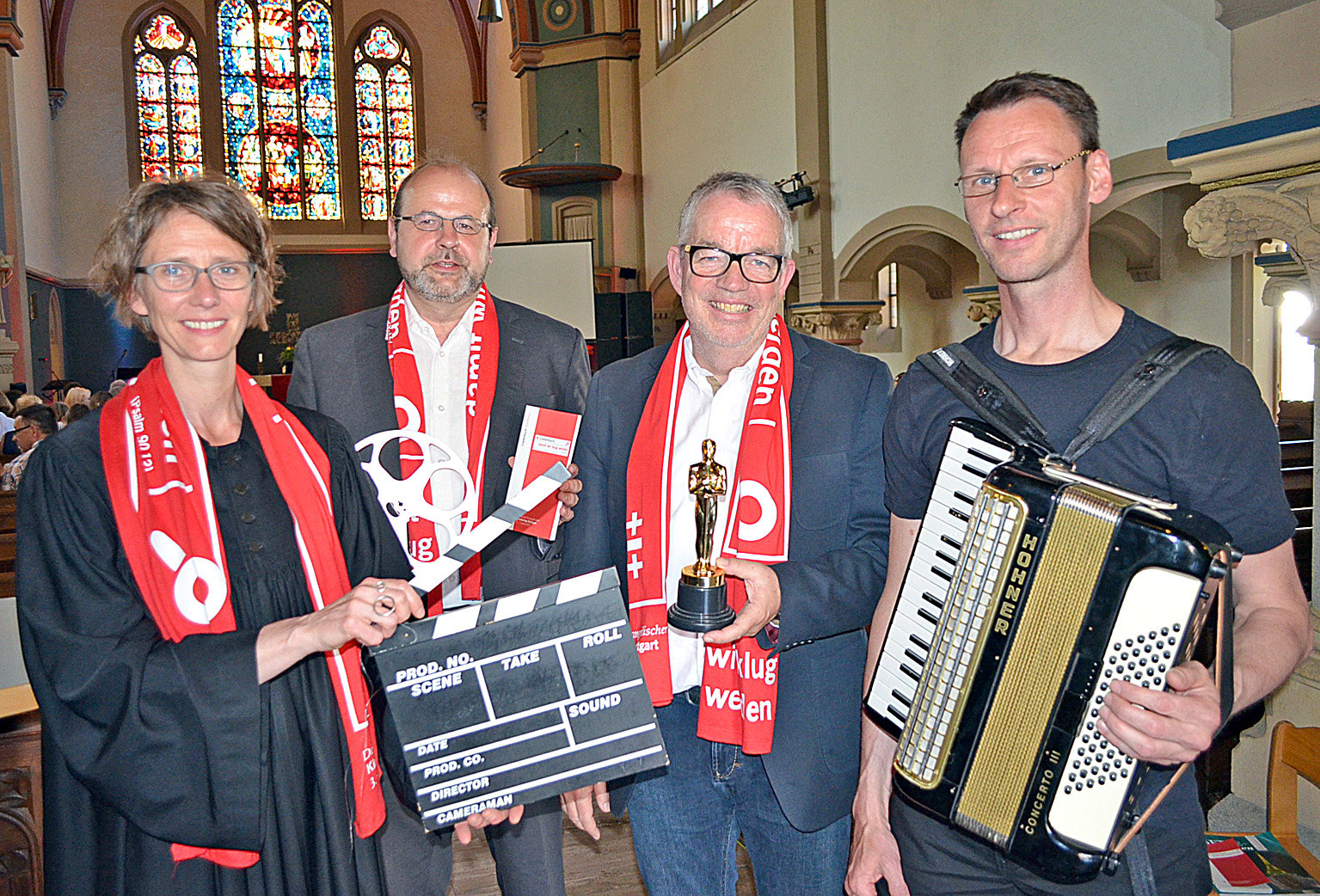 „Aufbrechen und klug werden“ war in Anlehnung an die Kirchentagslosung „damit ihr klug werdet“ der Titel des besonderen Film-Gottesdienstes auf dem Kirchentag in Stuttgart, der von Pfarrerin Susanne Karmeier, den Pfarrern Hans-Peter Marker, Christian Höfener-Wolf und dem Kirchenmusiker Klaus Eldert Müller am Akkordeon vorbereitet und geleitet wurde.