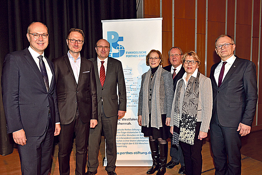KAMEN – Die Diakonie sollte Impulsgeber für gesellschaftlichen Zusammenhalt sein. Mit dieser Forderung wandte sich Ulrich Lilie, Präsident der Diakonie Deutschland, an die Teilnehmerinnen und Teilnehmer des Neujahrsempfangs der Evangelischen Perthes-Stiftung. Lilie, der über unternehmerische Diakonie im Wandel sprach, nannte als aktuelle Herausforderungen Themen wie Globalisierung, Digitalisierung, Flucht und Inklusion. „Die Anforderungen, die an uns gestellt werden, ändern sich – und das ist wichtig“, so der Diakonie-Präsident. Die Zukunft gesellschaftlichen Zusammenhaltens entscheide sich vor Ort – in den Sozialräumen der Menschen.