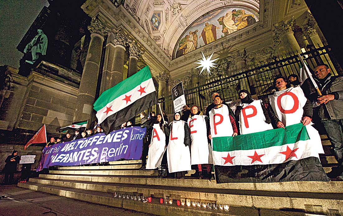 Etwa 200 Menschen haben vor dem Berliner Dom gemeinsam mit syrischen Flüchtlingen eine interreligiöse Mahnwache für Frieden in Syrien abgehalten. Bei der gemeinsamen Aktion mit Vertretern von Christen, Muslimen und Juden wurde ein Ende des Krieges in dem Land und Solidarität mit den Bewohnern Aleppos gefordert. Flüchtlinge hielten Schilder mit „Stand with Aleppo“ hoch, auf anderen wurden der russische Präsident Wladimir Putin und der syrische Diktator Baschar al-Assad als „Killer“ der syrischen Bevölkerung bezeichnet. Ein großes Banner warb „Für ein weltoffenes und tolerantes Berlin“. Der Glaube sei „nicht die Ursache für Krieg und Gewalt“, betonte die Initiatorin der Aktion, die Berliner Generalsuperintendentin Ulrike Trautwein. Die Mahnwache wolle ein „deutliches religiöses und politisches Signal“ von Kirchen, Synagogen und Moscheen setzen, sich für Frieden und Menschenrechte und gegen Gewalt auch in Syrien einzusetzen.
