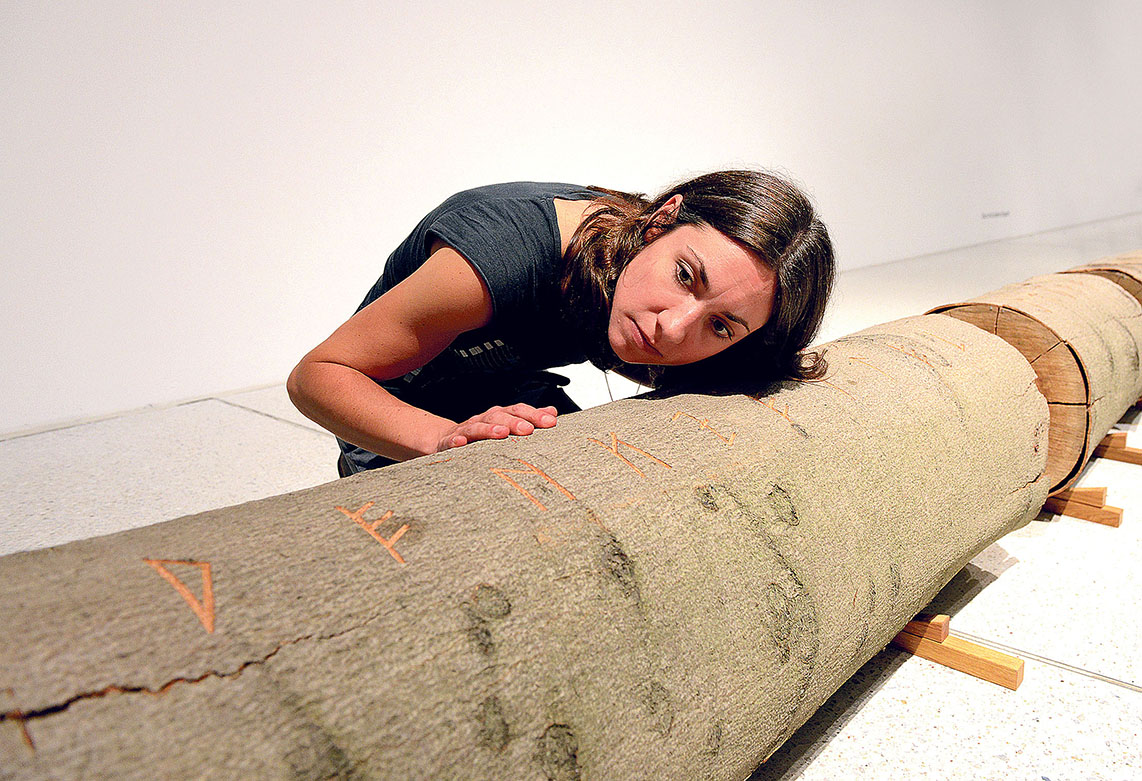 Er wollte keine wörtliche, sondern eine sinngerechte Übersetzung der Bibel liefern, die jedem verständlich sein sollte: „Denn man muss nicht die Buchstaben in der lateinischen Sprache fragen, wie man soll Deutsch reden, sondern man muss die Mutter im Hause, die Kinder auf der Gassen, den gemeinen Mann auf dem Markt drum fragen und denselbigen auf das Maul sehen, wie sie reden und darnach dolmetschen, da verstehen sie es denn und merken, dass man deutsch mit ihnen redet.“ Die wie ein Orchester mit Resonanztafeln aus Holz und Metall inszenierte Installation „Aufs Maul geschaut“ hebt anhand von acht Redewendungen die lautlichen Aspekte, die spezifische Rhythmik und klanglichen Wiederholungen hervor, die Luthers Sprache eingängig und einprägsam machen. Etwa den dreifachen Gleichklang von „au“ in den Wörtern auf, Maul, geschaut. Oder den Gleichklang des Anlauts benachbarter Wörter: Sieben Siegel.