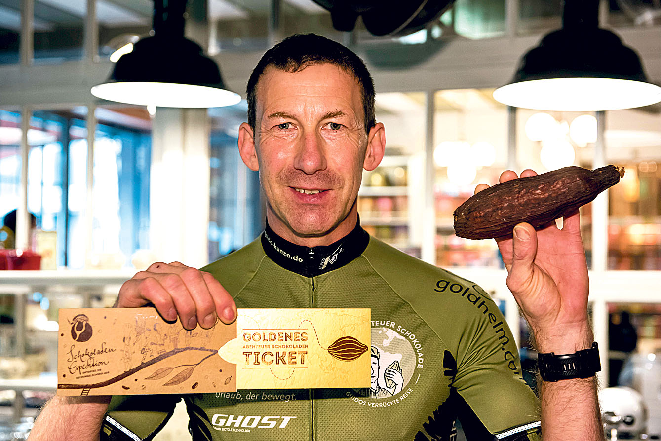 Kürzlich ist Kunze von Frankfurt am Main aus zu seinem neuen Abenteuer nach Südamerika aufgebrochen. Dieses Mal plant er einen 3500-Kilometer-Ritt über die Anden Ecuadors und Kolumbiens. Es geht bis auf 4000 Meter Höhe hinauf und wieder hinab bis an die Küste. Unterwegs will der Radler kleine Familienbetriebe im Dschungel besuchen. Und rund 40 Kilogramm feinste Kakaobohnen, fermentiert, noch nicht geröstet, will er dann auf sein Rad packen.