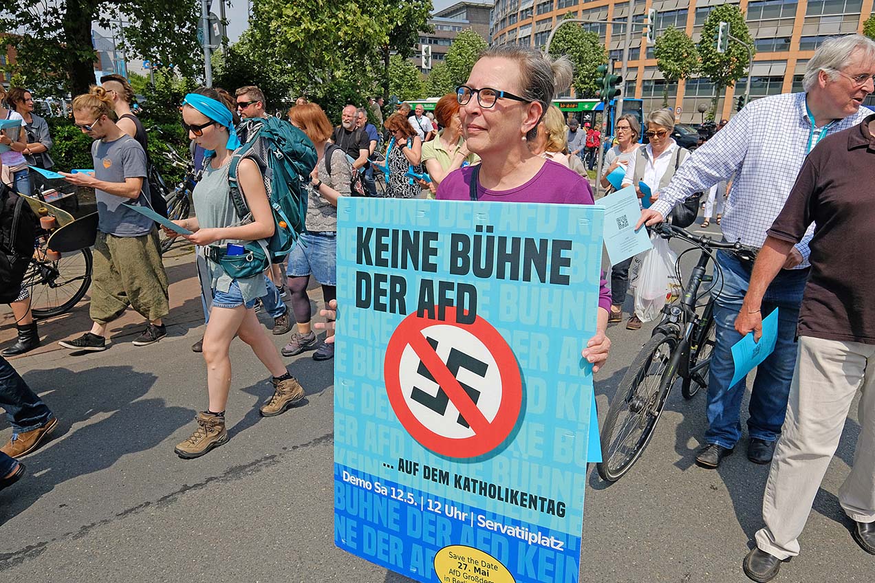 Der Kirchentag ist eine Organisation evangelischer Laien. Seine Entscheidungen sind daher weitgehend unabhängig von der EKD und den Landeskirchen. Der Umgang mit der AfD sorgte in der Vergangenheit immer wieder für Diskussionen. Beim Katholikentag 2016 in Leipzig wurden AfD-Vertreter explizit nicht eingeladen. Beim evangelischen Kirchentag 2017 in Berlin gab es eine Diskussion zwischen der damaligen Sprecherin der Vereinigung „Christen in der AfD“, Anette Schultner, und dem Berliner Landesbischof Markus Dröge. Beim Katholikentag in diesem Jahr in Münster nahm an einer Diskussion mit Politikern aller im Bundestag vertretenen Parteien auch Volker Münz teil. epd