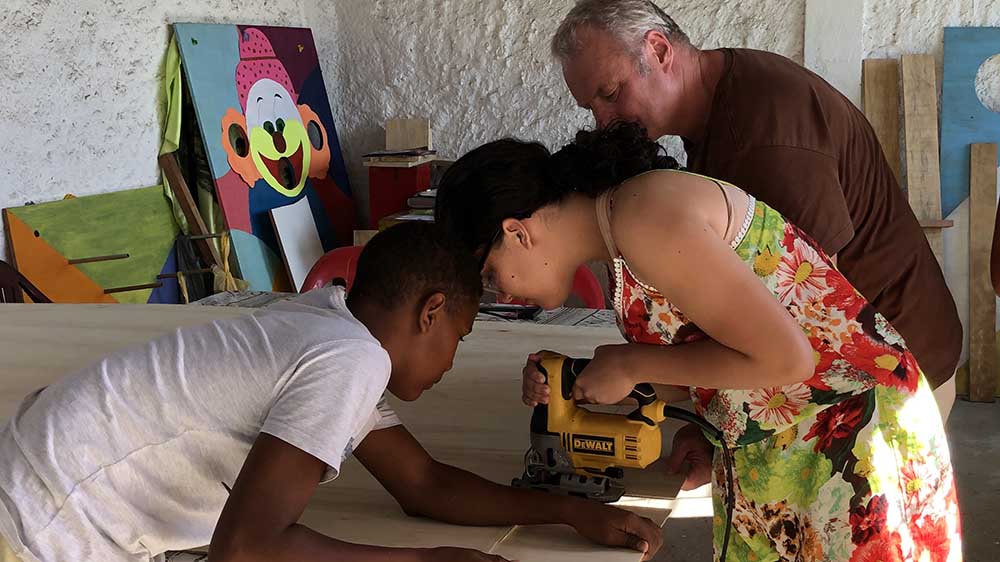 Zwei Jugendliche arbeiten an der Werkbank von "Hakuna Matata" - Privat
