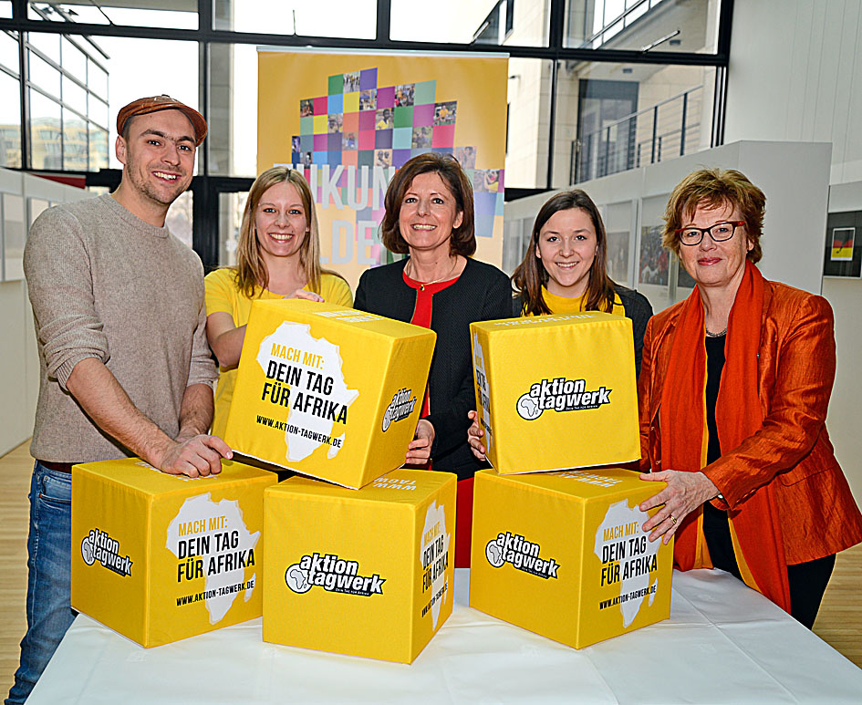 Als Schirmherrin des Hilfswerks „Aktion Tagwerk“ hat die rheinland-pfälzische Ministerpräsidentin Malu Dreyer (Mitte) in Berlin den Startschuss für die Kampagne „Dein Tag für Afrika“ gegeben. Seit 2003 gehen einmal im Jahr Schüler in ganz Deutschland einen Tag lang nicht zur Schule, sondern arbeiten stattdessen in verschiedenen Betrieben. Den Lohn, den sie an diesem Tag erhalten, spenden sie für bedürftige Kinder in Ruanda oder Ghana. Seit dem Start der Aktion haben sich mehr als 2,3 Millionen Jugendliche an der Kampagne beteiligt. In diesem Jahr findet der bundesweite Aktionstag der Kampagne am 21. Juni statt. Seit 2014 kooperiert die „Aktion Tagwerk“ auch mit dem evangelischen Hilfswerk „Brot für die Welt“. „Wir haben ähnliche Ziele“, sagt Brot-für-die-Welt-Direktorin Cornelia Füllkrug-Weitzel (rechts). „Uns geht es darum, gemeinsam neue Horizonte für junge Leute zu eröffnen.“ Informationen im Internet: www.aktion-tagwerk.de. Benjamin Lassiwe