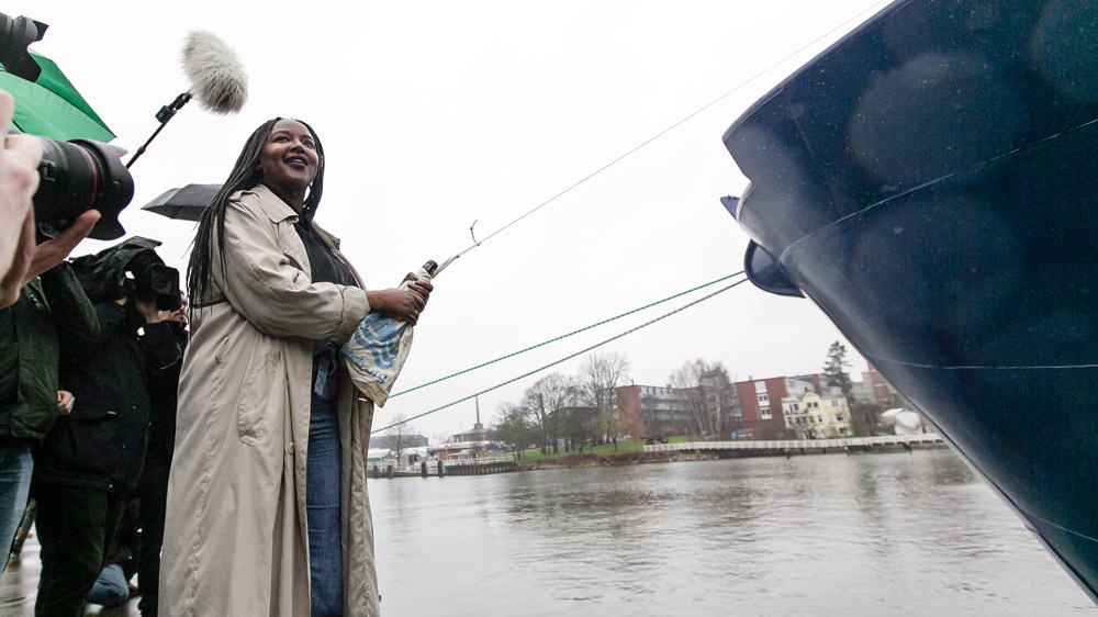 Kiel. Mit einer traditionellen Sektflasche ist in Kiel das kirchliche Flüchtlingsschiff getauft worden. Es soll vor der Küste Libyens Flüchtlinge vor dem Ertrinken retten. Es sei ein “krasses Zeichen”, dass hier Menschen in Gefahr konkret geholfen werden könne, sagte Taufpatin Aminata Touré (Grüne), Vizepräsidentin des schleswig-holsteinischen Landtags, deren Eltern aus Mali geflohen waren. Der neue Name war lange geheim gehalten worden: Das ehemalige Forschungsschiff “Poseidon” heißt jetzt schlicht “Sea-Watch 4”.