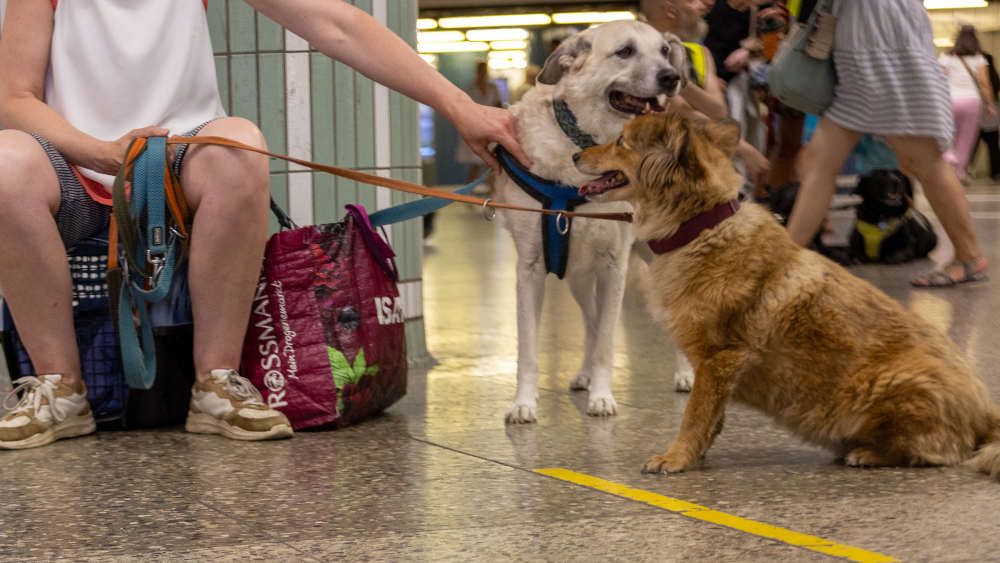 In der unterirdischen B-Ebene der Hauptwache in Frankfurt am Main versammeln sich gegen 13 Uhr Menschen mit Hunden, Katzen und anderen Haustieren. Wildes Beschnuppern und Gebell irritiert manche Passanten, aber ein Helfer in gelber Weste klärt über die große Zahl von Menschen mit ihren Tieren auf. Die freiwilligen Helferinnen und Helfer des Vereins Soziale Tier-Not-Hilfe Frankfurt bauen in Windeseile Anmelde- und Behandlungstische sowie Koffer mit medizinischem Material auf und legen Futter- und Sachspenden aus. „Es ist wichtig, dass alles schon steht, wenn die Tierärzte kommen“, sagt der Ehrenamtliche Tobi, der für den Aufbau zuständig ist.