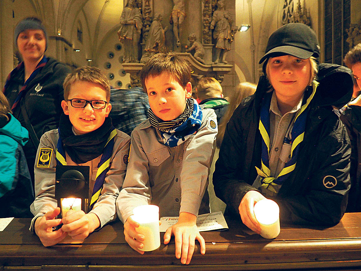 Großer Empfang für das Friedenslicht aus Bethlehem: Im abgedunkelten Dom in Münster erwarteten mehr als 2000 Pfadfinderinnen und Pfadfinder die kleine Flamme. „Friede kann nur dann bestehen, wenn wir in Freiheit leben können, die Freiheit des Anderen achten und frei mitbestimmen und entscheiden dürfen“, erklärte Pfarrer Martin Mustroph, und Generalvikar Norbert Köster fügte hinzu: „Wir müssen uns in die Menschen hineinversetzen, auf unsere Gemeinsamkeiten schauen und nach unseren eigenen Fehlern suchen.“ Das Licht, das in der Geburtsgrotte in Bethlehem entzündet wird, wird in Rathäuser, Krankenhäuser, Kirchen und andere öffentliche Orte weitergetragen und erinnert an die Weihnachtsbotschaft vom Frieden auf Erden. UK