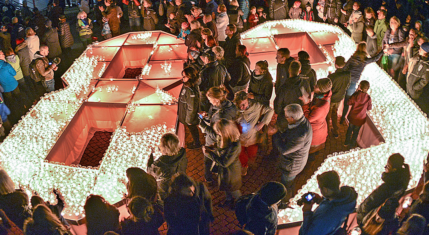 Leipzig hat mit einem Lichtfest aus tausenden Kerzen im Rahmen eines Bürgerfestes auf dem zentralen Augustusplatz an die friedliche Revolution in der DDR am 9. Oktober 1989 erinnert. Unter dem Motto „Aufbruch, Verantwortung, Offenheit“ stand nach dem Einzug der AfD in den Bundestag aber weniger der Mut der damaligen Demonstranten, als die Warnung vor neuen Grenzen im Mittelpunkt. Niemand sei wohl 1989 mit dem Wunsch nach neuen Mauern in der Gesellschaft auf die Straße gegangen, sagte die evangelische Theologin Margot Käßmann beim Friedensgebet in der Leipziger Nikolaikirche. „Um offene Grenzen ging es, um offene Herzen“, zeigte sich die Reformationsbotschafterin der Evangelischen Kirche in Deutschland (EKD) überzeugt. Hass, Ausländerfeindlichkeit und Menschenverachtung dürften keinen Platz in Deutschland haben. foto: epd