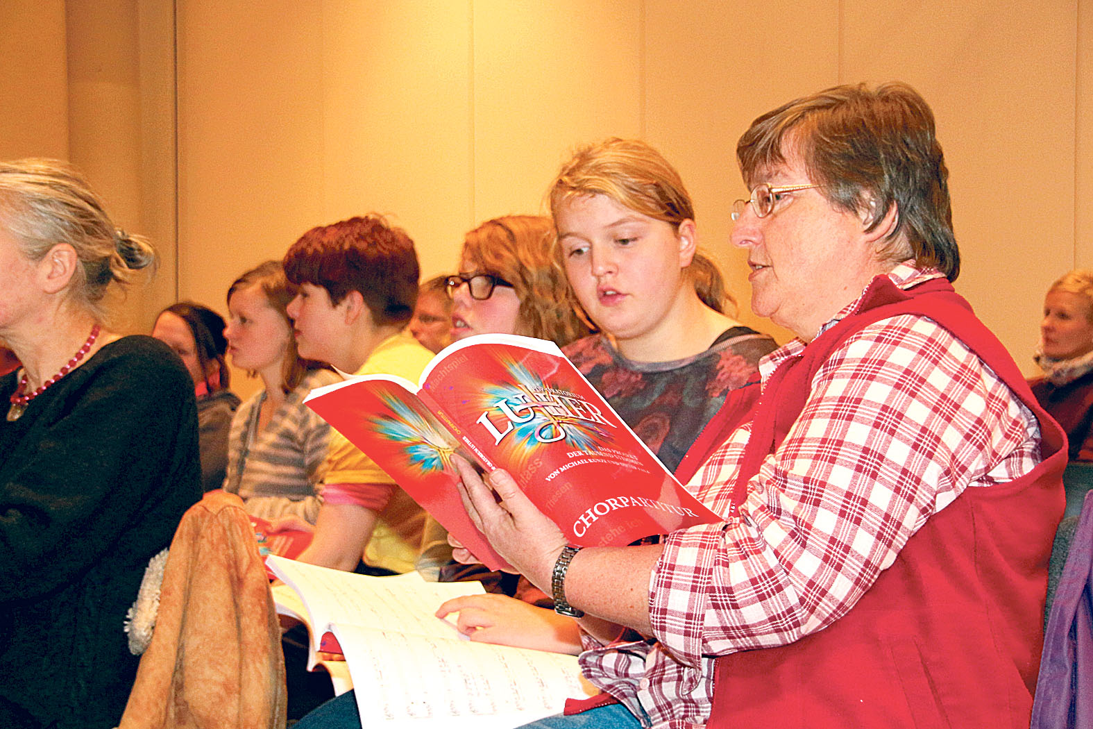 Eigentlich braucht Marina Dankowski die Noten gar nicht. Sie singt alles auswendig. Höchstens für den Text schaut sie mal in das rote Heft. „Ich finde das gar nicht schwer“, sagt die 17-Jährige vor der Probe des integrativen Chores der diakonischen Stiftung Eben-Ezer bei Lemgo. „Singen macht mir einfach Spaß.“