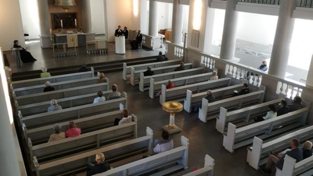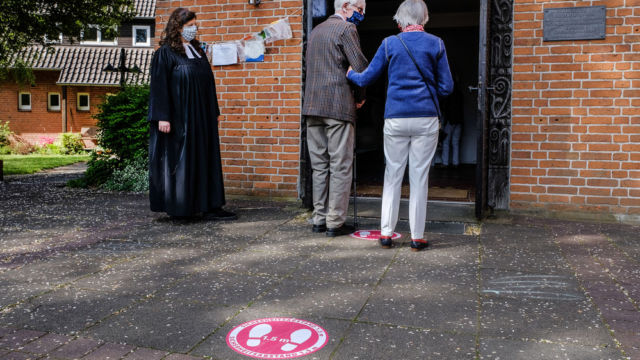 Inzwischen ist es kurz vor 10 Uhr. Der Gottesdienst geht weiter. Rund 30 Menschen sitzen bereits in den Bänken und Stühlen und warten. Pastor Lemme desinfiziert sich noch schnell die Hände und geht zurück in die Kirche. Dann beginnt er mit dem nächsten Gottesdienst.