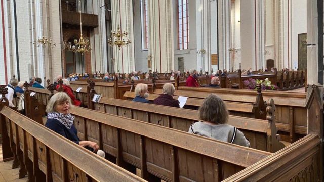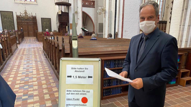 „Jetzt üben wir uns eben eher im klösterlichen Tageszeitengebet“, sagt er mit einem Schmunzeln. Überhaupt scheint er richtig Spaß daran zu haben, neue Wege des Gottesdienstes auszuprobieren – die Zwangspause als Reset, um Platz zu machen für neue Ideen. „Diese Freiheit, noch mal nachdenken zu dürfen, was Kirche, was ein Gottesdienst eigentlich wirklich ist, ist doch auch total schön“, sagt er. So wie in der Christianskirche wird im ganzen Norden wieder Gottesdienst gefeiert – auf die besonderen Bedingungen mussten sich die Gemeinden vorbereiten.