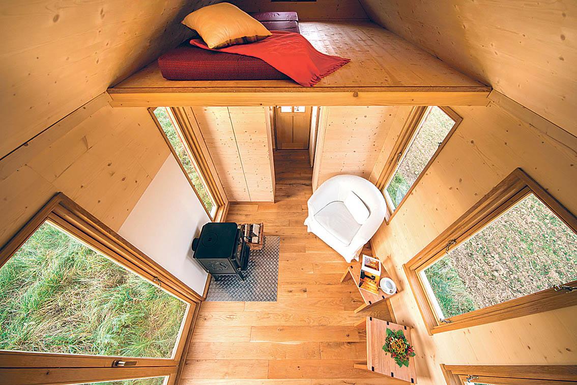 Pedersen kam zu den Tiny Houses, weil er sich über die Mietpreise ärgerte, als sein Sohn anfing zu studieren. Heute verkauft er welche. Wer ein Tiny House betritt, erwartet Enge. Doch vor allem die Deckenhöhe, bei Pedersens Haus sind das 3,20 Meter, öffnet den Raum. Die obere Etage besteht nur aus zwei Galerien mit Betten – der Rest bleibt offen und macht das Erdgeschoss hell und luftig. „Wenn Leute zum ersten Mal reinkommen, sind sie überrascht, schweigen und schauen“, erzählt Pedersen: „Dann sagen sie: ,Mehr braucht kein Mensch‘.“