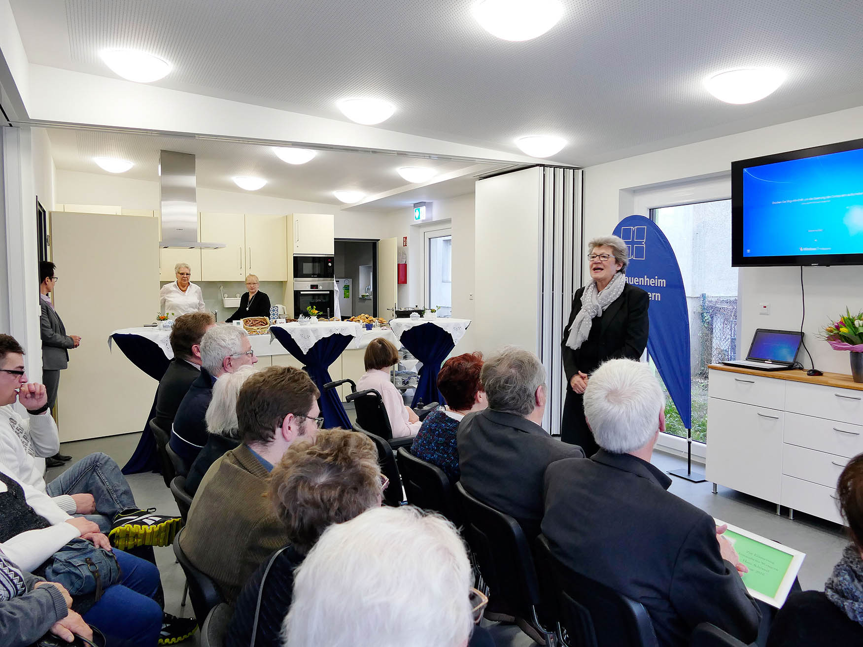 Nach Sektempfang und Begrüßung durch die leitende Pfarrerin der Evangelischen Frauenhilfe in Westfalen, Angelika Weigt-Blätgen, erläuterte Architekt Dieter Schaarschmidt Konzept und Verlauf des Bauprojektes. Er betonte dabei die gute Zusammenarbeit mit der westfälischen Frauenhilfe als Bauherrin. Etwa fünf Jahre habe man von der ersten Planung bis zur Fertigstellung gebraucht. „Es sollte von Anfang an kein Sonderbau sein, sondern Normalität ausstrahlen, sich in die Umgebung einfügen und Menschen mit besonderen Bedarfen sowohl Sicherheit und Betreuung als auch ein Zuhause bieten“, fasste der Solinger Architekt die Überlegungen zusammen.