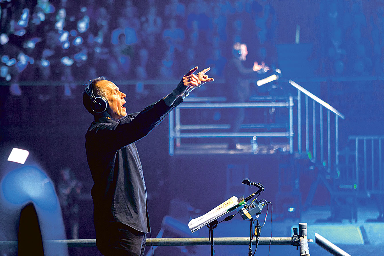 Matthias Nagel (vorn), Pop-Kantor der Evangelischen Kirche von Westfalen, und Hartmut Naumann, Leiter der Pop-Akademie Herford/Witten, in vollem Einsatz: Die beiden westfälischen Kirchenmusiker dirigierten im ausverkauften Gerry-Weber-Stadion in Halle/Westfalen den Chor bei der Aufführung des Pop-Oratoriums „Luther“. Auf der Bühne standen mehr als 1600 Sängerinnen und Sängern im Alter zwischen sechs und 82 Jahren. Unter den Gästen waren unter anderen der Komponist Dieter Falk und der Superintendent des evangelischen Kirchenkreises Halle, Walter Hempelmann. Neben dem Chor mit Sängern aus der Region wirkten bei der Aufführung in Halle auch 13 Solisten, ein 25-köpfiges Symphonieorchester und eine aus sechs Musikern bestehenden Rockband mit. Veranstalter des Pop-Oratoriums ist die Stiftung Creative Kirche in Witten in Kooperation mit der Evangelischen Kirche in Deutschland (EKD) und weiteren Partnern. Schirmherrin war die westfälische Präses Annette Kurschus. UK