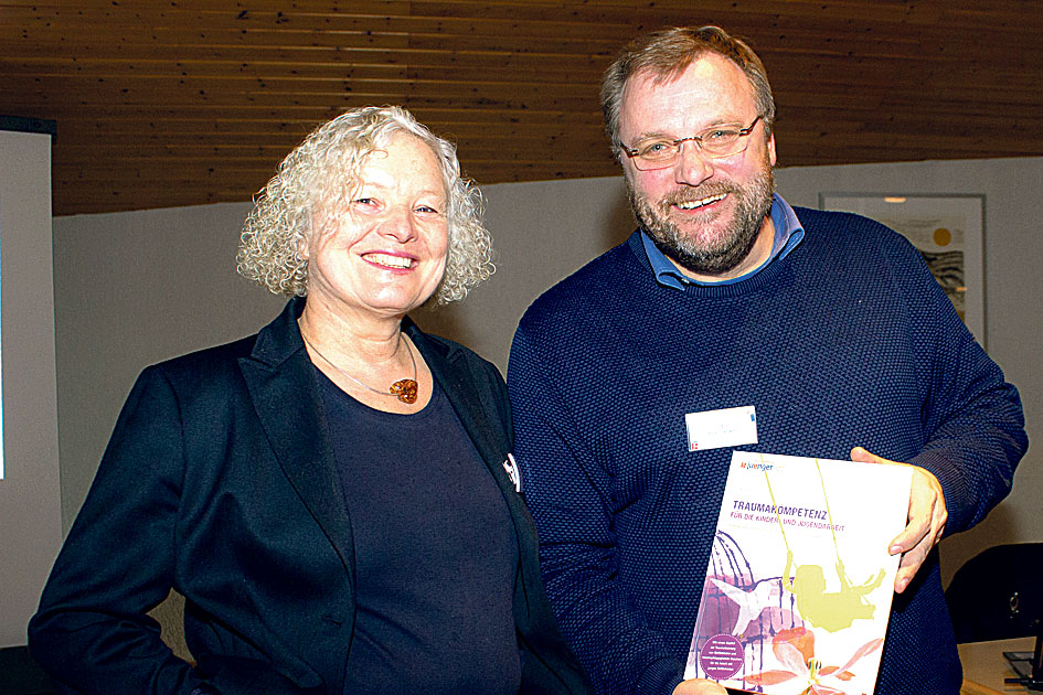 Traumatherapie sei oft nicht schnell zu bekommen und dann auch nur zu bestimmten Terminen. Traumapädagogik dagegen könne Tag für Tag im pädagogischen Alltag umgesetzt werden. Haupt-Scherer ermutigte die Anwesenden zu mehr pädagogischem Selbstbewusstsein.