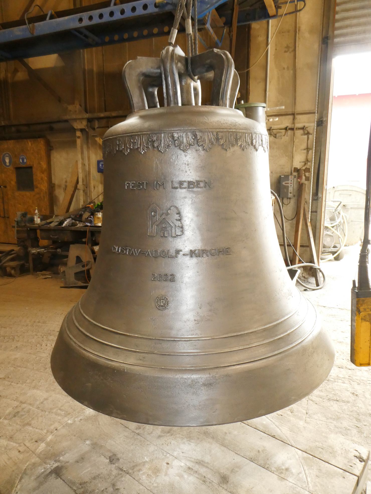 Die neuen Klangkörper wiederum kriegen jeweils ein Schild über ihrer Aufhängung und am Glockenschalter. «So erinnern sie an unsere alten Glocken, die zwar keinen Bibelvers trugen, aber die Namen der Evangelisten Markus, Lukas und Johannes», erläutert Norbert Pietsch. Am Ostersonntag soll der neue Dreiklang der Gustav-Adolf-Kirche dann erstmals mit nachhaltig-schönem Klang zum Gottesdienst rufen.