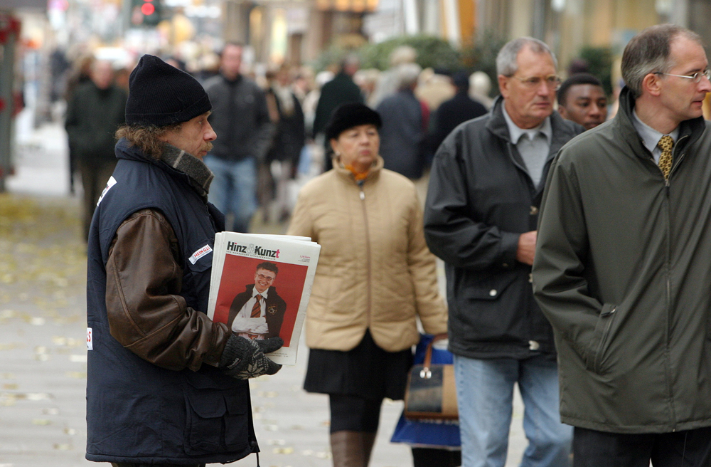 Ein Verkäufer von Hinz und Kunzt am Hamburger Jungfernstieg (Archivbild)