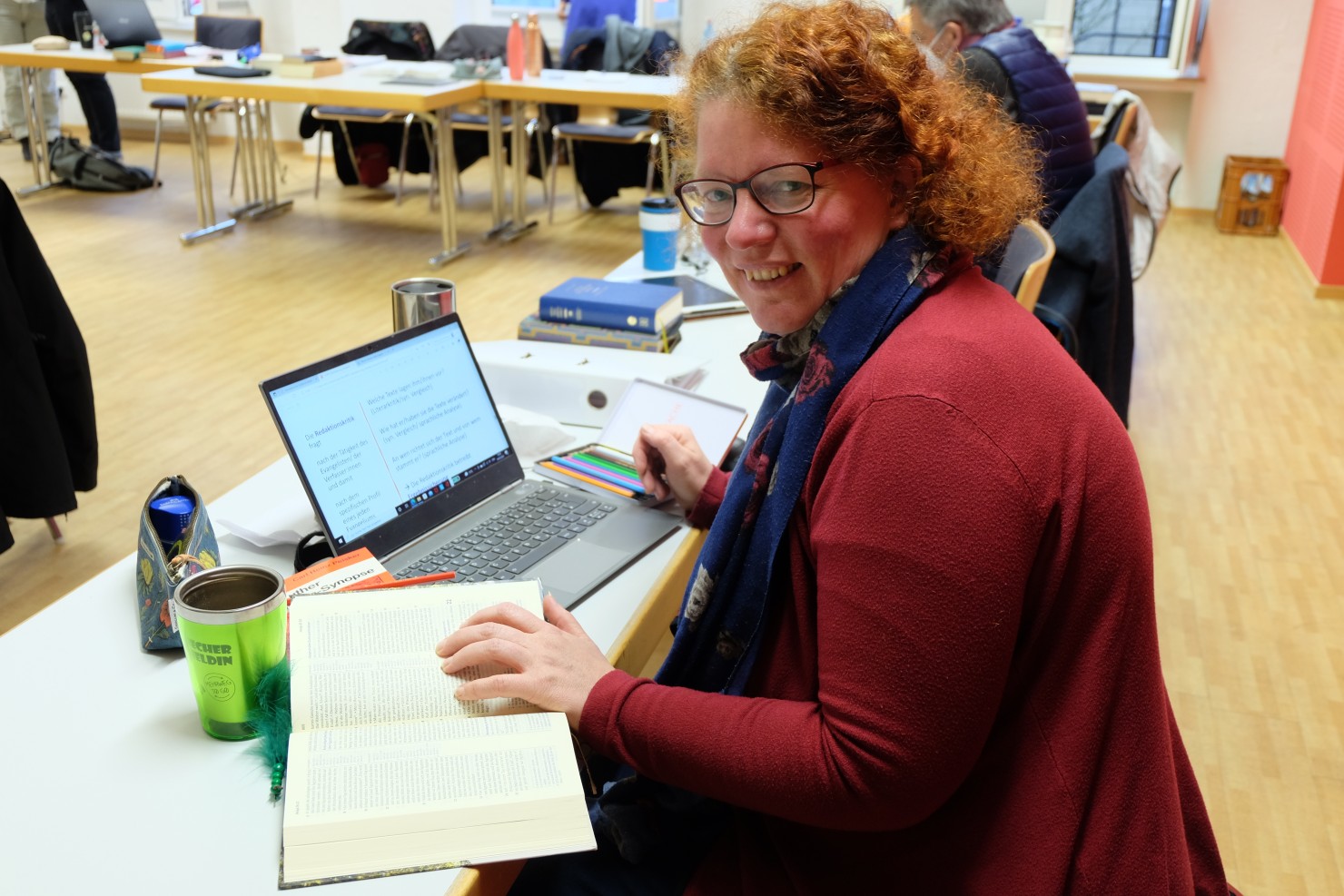 Mit der Bewerbung auf einen Studienplatz fing tatsächlich ein neues Kapitel im Leben an. Plötzlich waren da Anforderungen, mit denen sich Bertelsmann seit ihrem Studium vor mehr als 20 Jahren nicht mehr auseinandersetzen musste: Eine Prüfung in Bibelkunde, ein Kolloquium und ein theologisches Essay zum Thema Flucht und Willkommenskultur waren Zugangsvoraussetzung für die Zulassung. „Alle, die sich beworben hatten, haben zwar einen Studienabschluss“, erklärt Bertelsmann, „aber das waren für die meisten von uns doch ganz unbekannte Stoffe. Außerdem ist es eine echte Herausforderung, aus dem praktischen Berufsleben wieder in das theoretische wissenschaftliche Denken einzutauchen.“ Erschwerend kamen die Corona-Auflagen hinzu, durch die viele der Kurse und Gespräche online stattfinden mussten. Trotzdem ging sie mit Feuereifer an die Sache – und bestand alle Prüfungen. „Es ist anstrengend, aber es macht einfach wahnsinnig Spaß“, sagt sie.
