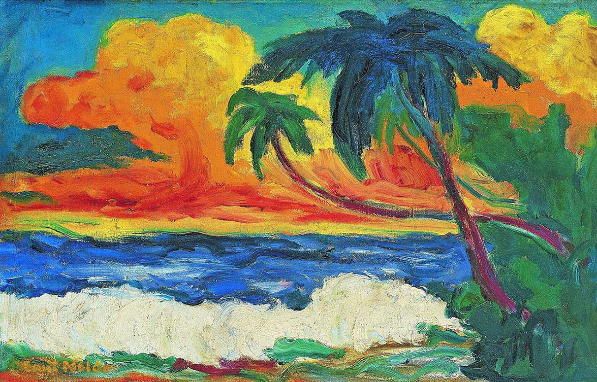 Emil Nolde wurde als Emil Hansen in Nolde im damals deutschen Nordschleswig geboren. Gemeinsam mit seiner Frau Ada nahm er 1913/14 inoffiziell an einer „Medizinisch-demographischen Deutsch-Neuguinea-Expedition“ des Reichskolonialamtes teil. Die Expedition sollte die verheerenden Epidemien in den deutschen Kolonien erforschen. Der Maler sah sich in der Rolle des Dokumentierenden, denn schon damals beobachtete er: „Wir weißen Europäer sind das Unheil der farbigen Naturvölker.“ In Briefen und Tagebucheinträgen schilderte er die Zerstörung der Lebenswelt der Einheimischen. Mit seinen Bildern versuchte er diese Welten festzuhalten.