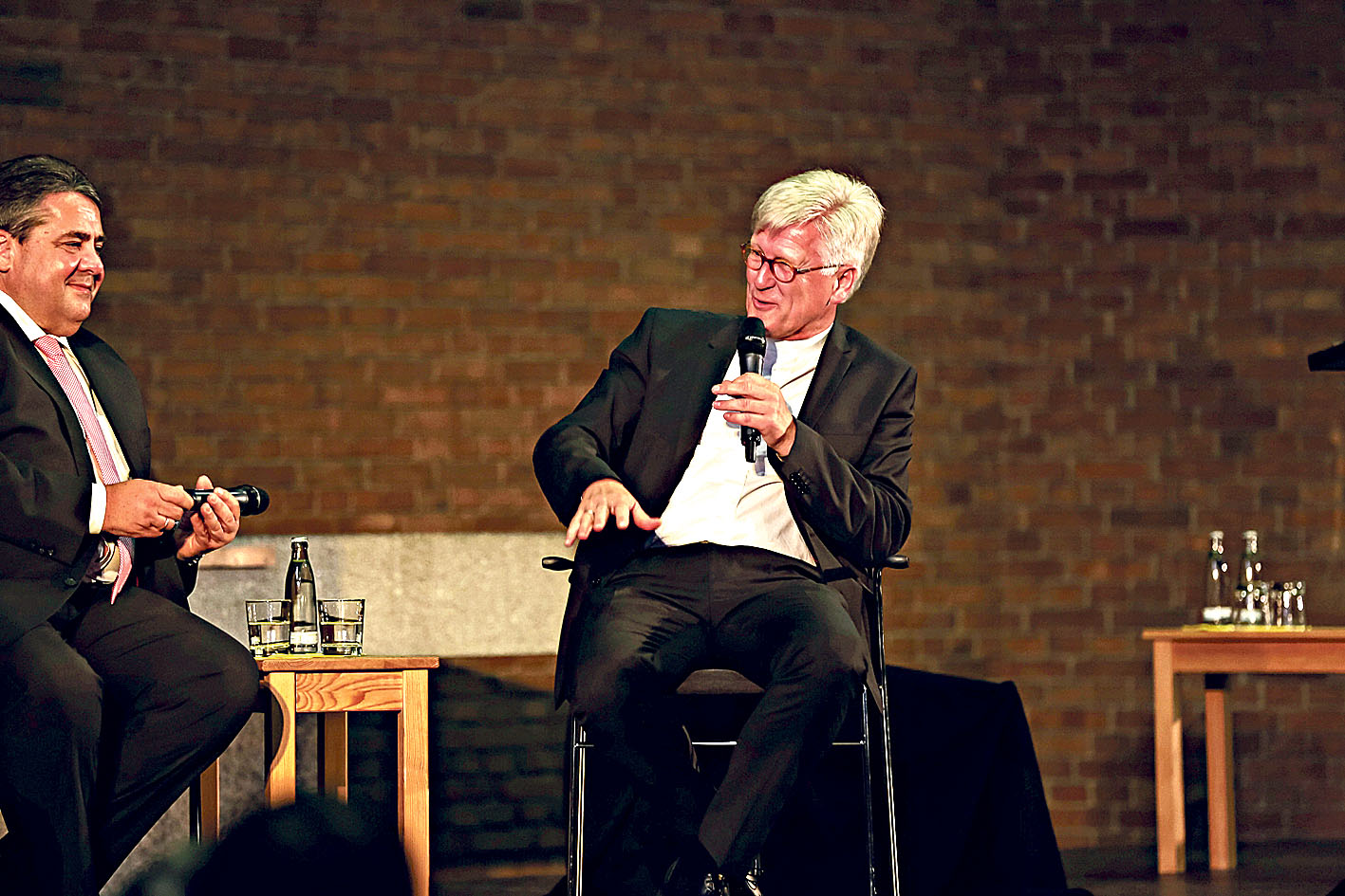 Gabriel unterstrich, dass die Flüchtlinge sowohl eine Bereicherung als auch eine Herausforderung darstellten. Angesichts eines Arbeitsmarktes, der in den nächsten Jahren vier bis sechs Millionen Arbeitskräfte verliere, brauche man Menschen, die in Deutschland mitwirkten. Dieses Land habe jedoch feste Prinzipien, zu denen die Grundrechte gehörten. Auch dürfe keine Religion über der anderen stehen. Nötig ist nach Worten Gabriels eine „doppelte Integration“. So müsse die bislang eine Million Flüchtlinge in das gesellschaftliche Leben integriert werden Zugleich müssten auch diejenigen eingebunden werden, die „sich unsicher fühlen und Ängste entwickeln, weil sie Sorge haben, ihren Arbeitsplatz oder ihre Wohnung zu verlieren“.