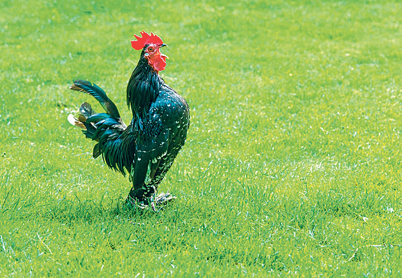 Und tatsächlich, es funktionierte. Aufgeregt flatterte der Hahn hinter meinem Mann her.