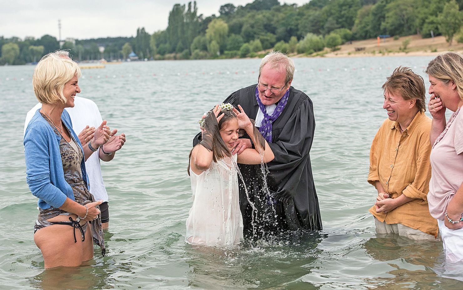 In weißen Gewändern waten Menschen ins hüfthohe Wasser, lassen sich nach hinten in den Arm eines Begleiters fallen, kommen tropfnass wieder hoch – und sehen danach in der Regel glücklich aus. Der uralte Ritus der christlichen Taufe wurde nach den biblischen Berichten zum ersten Mal an Pfingsten gefeiert: Petrus taufte in Jerusalem am Pfingstfest 3000 Menschen. Darum gilt Pfingsten nicht nur als Geburtstag der Kirche, sondern auch als beliebtes Datum für Taufen – und in immer mehr Fällen auch für Feste in großem Rahmen.
