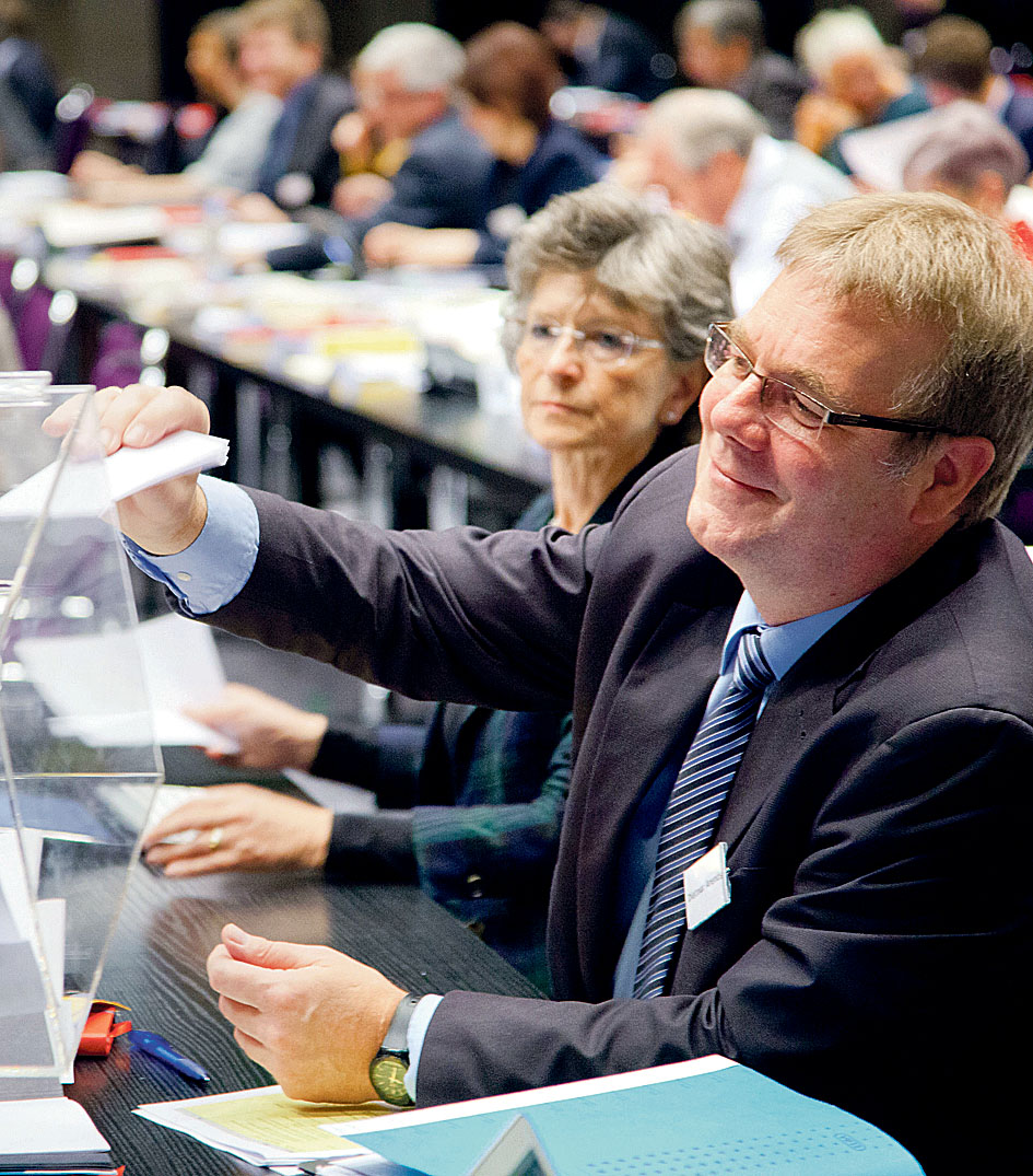 BREMEN – Die Neuwahl der Führungsspitze (siehe Seite 4 und UK 47, Seite 4) stand im Mittelpunkt der Synodentagung der Evangelischen Kirche in Deutschland (EKD). Bei den viertägigen Beratungen in Bremen wurde jedoch eine ganze Reihe weiterer Beschlüsse gefasst – etwa zur Flüchtlingspolitik und zum bevorstehenden Reformationsjubiläum. Außerdem wurde ein grundsätzlicher Kurswechsel im Selbstverständnis der EKD eingeleitet: Sie will sich künftig auch theologisch als Kirche verstehen. Allerdings müssen die Landeskirchen diesem Beschluss noch zustimmen. Nachfolgend die wichtigsten Entscheidungen: