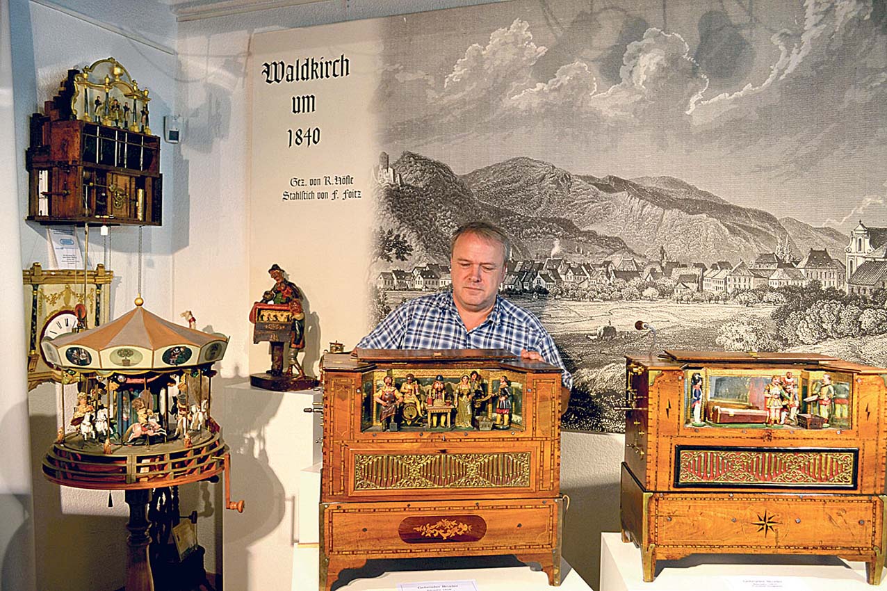 „Eine besondere Herausforderung ist die Nachfertigung von Teilen, die es nicht mehr gibt“, ergänzt Achim Schneider. Der Orgelbauer, der sein Handwerk bei Jäger & Brommer gelernt hat, schätzt die Vielseitigkeit seines fast nur aus Handarbeit bestehenden Berufs. „Kein Mensch kann ein komplettes Handy bauen, ich aber eine Drehorgel“, freut sich der Waldkircher. Dafür brauche er rund 500 Stunden. In England diente die Drehorgel trotz ihrer nur 20 Tonstufen sogar als Kircheninstrument, weiß er.