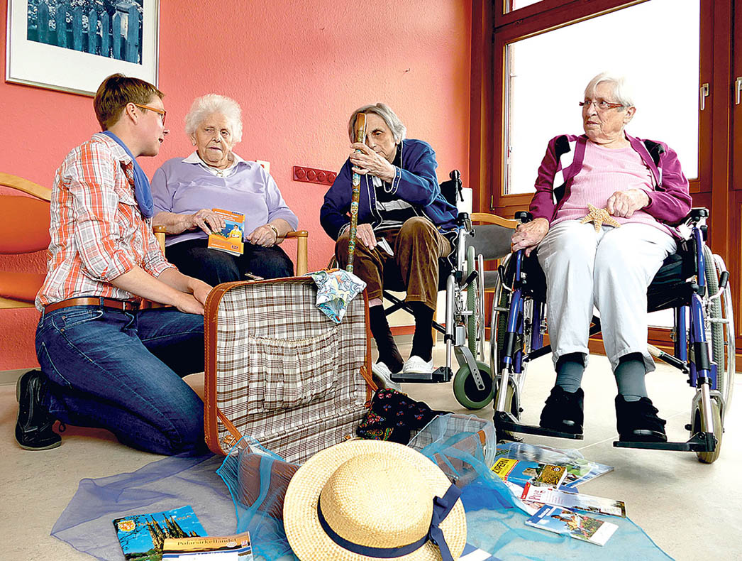 Auf dem Boden liegt ein offener Urlaubskoffer. Daneben ein Strohhut, ein Wanderstock und einige Reiseführer. Elfriede Meissner, Ursula Loewende und Maria Schulte nehmen die Gegenstände in die Hand – und lächeln. Sofort rattert es in ihren Köpfen. Wenig später berichten sie von ihren schönsten Urlaubsreisen.