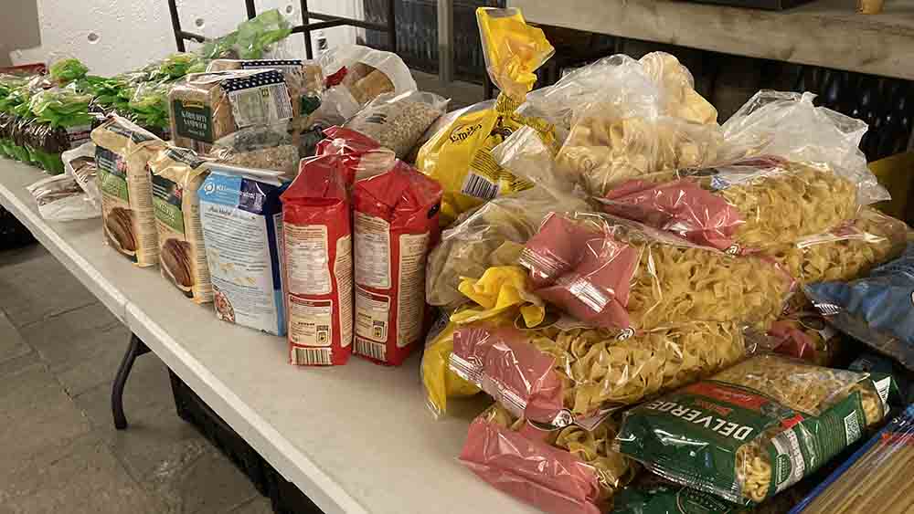 Nudeln und mehr können sich die Bedürftigen mit nach Hause nehmen - Timo Teggatz