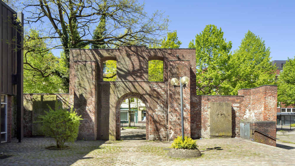 Das Ensemble mit barockem Eingangsportal, Hofplatz, Glockenturm und Bauten aus den 1960er Jahren steht unter Denkmalschutz. Die Ruinen der Dreifaltigkeitskirche stammen aus dem 17. Jahrhundert. Die alte Kirche wurde im November 1944 durch Bomben zerstört, von ihren Außenmauern ist heute noch die Westwand mit dem Portal erhalten. Ein Mahnmal des Krieges, das Risse bekommen hat.