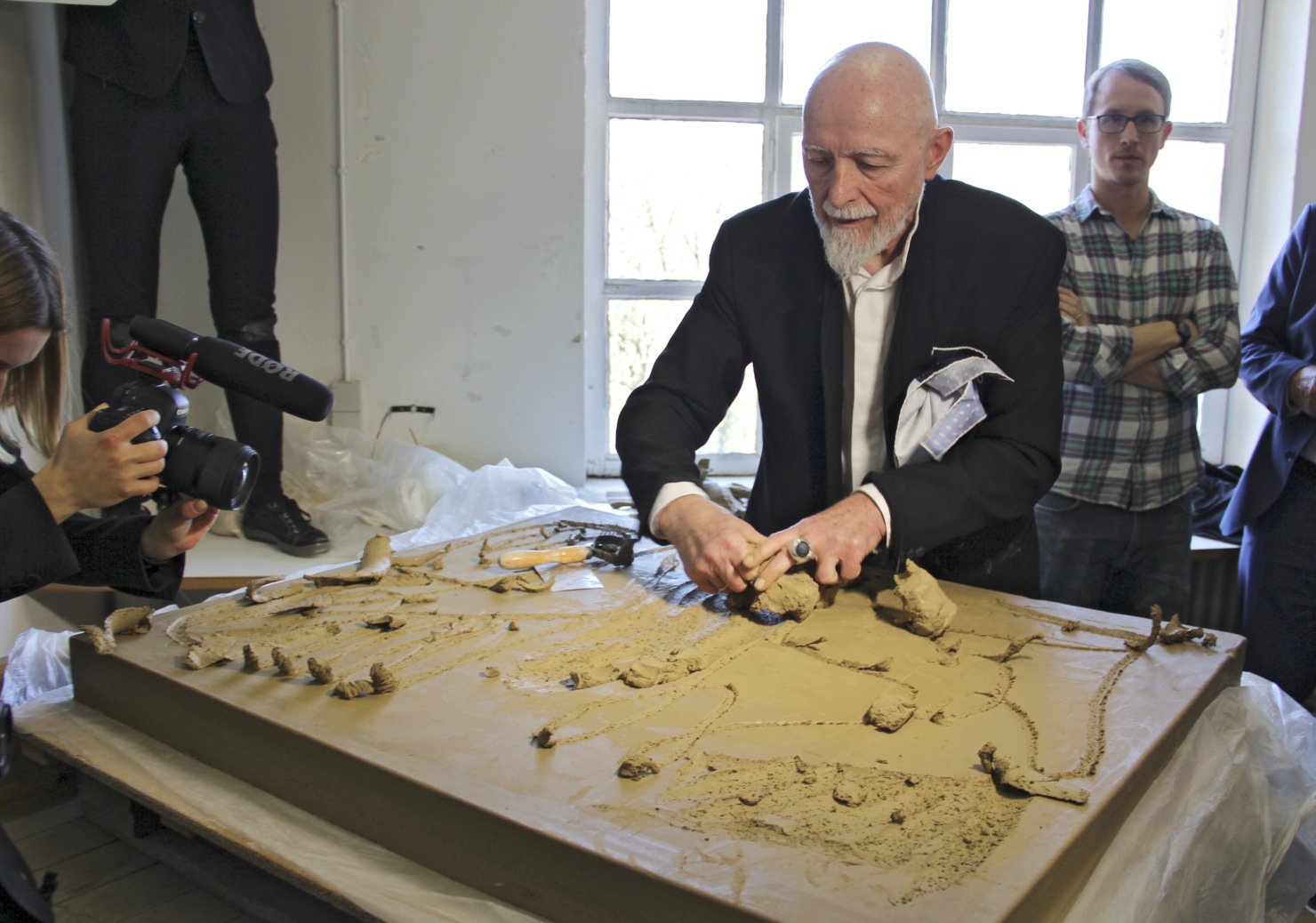 Das Werk bleibe Eigentum des Vereins Karlsruhe Kunst Erfahren e.V., betonte der 1941 im tschechischen Lieberec geborene Lüpertz. Auf die Frage, was er selbst von dem Projekt habe, sagte der Künstler schmunzelnd: "Ich habe nichts davon, außer Ruhm bis in die Ewigkeit."