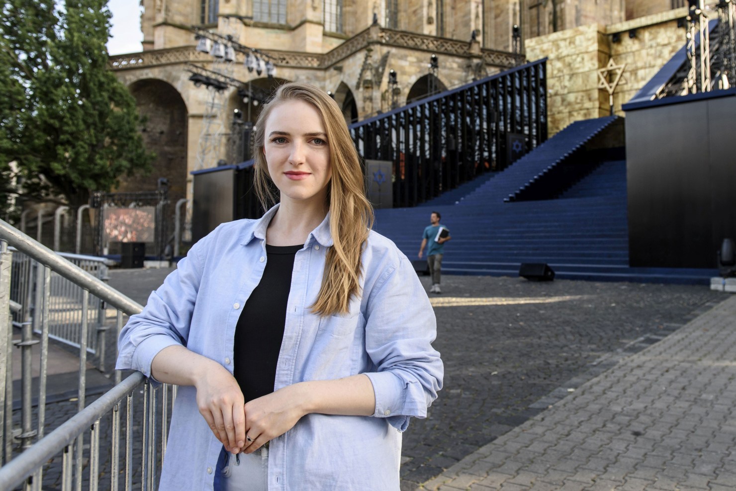 Im Sommer 2022 steht Valeria Mudra an einem warmen Juliabend auf dem Domplatz der thüringischen Landeshauptstadt Erfurt. Vor sich die 70 Stufen, die zur gotischen Kathedrale hochführen und die für die nächsten vier Wochen die Bühne der Erfurter Domstufen-Festspiele sein werden. Das Bühnenbild – eine fast neun Meter hohe und 16 Meter breite Mauer und eine fünf Meter hohe Skulptur – werden das Publikum allabendlich auf die musikalische Reise nach Jerusalem und Babylonien