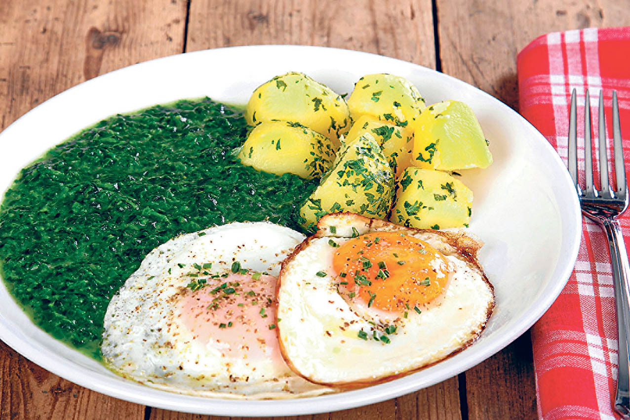 Seit alters her war man überzeugt, dass den ersten Kräutern des Jahres ebenso wie den um diese Zeit gelegten Eiern besondere Kräfte innewohnen, die es zu nutzen galt. So lag es dann nahe, am Gründonnerstag vitaminreiche „grüne Speisen“ aufzutischen: Grüne Pfannkuchen und Spinatnocken, Kräutersuppen, Feldsalat und die im Frankfurter Raum bekannte „Grüne Soße“. Das passte auch zu den alten, für die Fastenzeit vorgegebenen Speisevorschriften, die Fleischgerichte verboten.