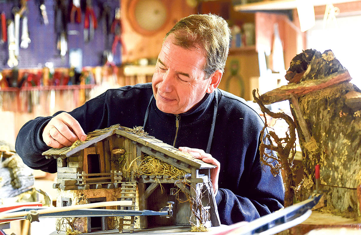 Eine Zeit lang lief das so nebeneinander her: Tagsüber arbeitete Mans in der Bank, abends bastelte er in der Werkstatt. Doch je mehr Bestellungen hereinkamen, umso arbeitsintensiver wurde das Hobby. „Oft war ich bis weit nach Mitternacht am Werkeln“, erinnert sich der Schnitzer. Nicht nur seine Frau fand, dass das so nicht weitergehen könne. Hinzu kam, dass sich Mans in seinem Hauptjob nicht mehr wohlfühl-te. „Ich war eigentlich nur noch Verkäufer.“ Als ihm sein Chef schließlich auftrug, einer über 80-jährigen Dame einen Bausparvertrag mit einer Laufzeit von zwölf Jahren zu verkaufen, zog Mans die Reißleine. Seitdem baut er hauptberuflich Krippen.