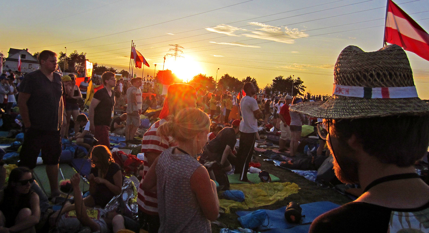 Am Samstag dachten wir uns, wir sind ganz schlau, stehen früh auf(wie leider noch tausend andere), damit wir am Vormittag in unserem Sektor sind, um gute Schlafplätze zu bekommen. Deshalb waren wir schon um 9 Uhr in Krakau aber erst um 15 Uhr an unserem Platz, weil wir über 25 km gegangen sind. Ich war um einen Sonnenbrand reicher aber überglücklich das wir unser Ziel endlich erreicht hatten.