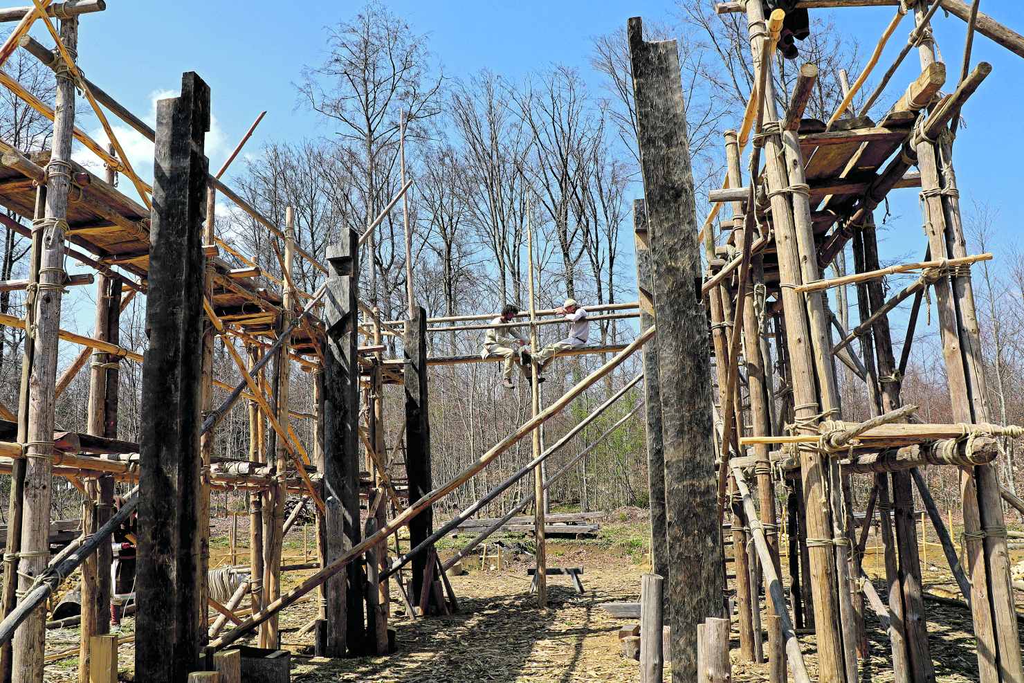 Die 25 Vollzeithandwerker auf der Baustelle wollen lernen, wie ihre Vorfahren Holz, Erz oder Stein bearbeiteten. Einer der wenigen Holzschindelmacher, die es noch gibt, hat sein Wissen weitergegeben. „Die letzte Generation mancher Handwerker ist am Aussterben“, sagt Napierala. So hält das Projekt alte Handwerkstechniken am Leben. Berufsschüler können hier das Balkenhauen lernen – etwas, das andernorts nicht mehr gelehrt wird.