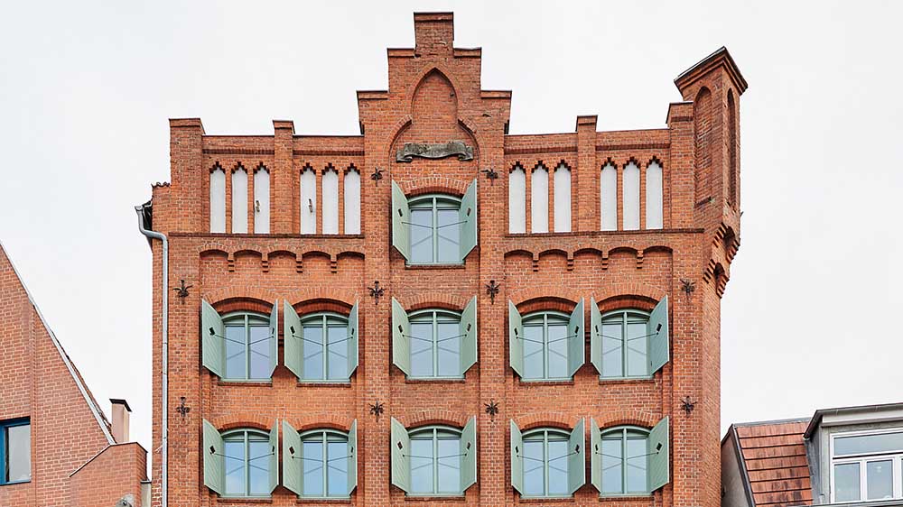 Im Moment ist das siebenstöckige Backsteingebäude mit den grünen Fensterläden am Lübecker Hafen noch eingerüstet. Handwerker gehen ein und aus, ein Fahrstuhl wird eingebaut, der ursprüngliche Dielenboden freigelegt. Nach der Fertigstellung soll es im Erdgeschoss eine Trauerhalle mit 80 Sitzplätzen und eine kleine Kapelle geben. Von unten kann man in die oberen beiden Stockwerke gucken, die das Paar mit viel Liebe zum Detail ausstatten will.