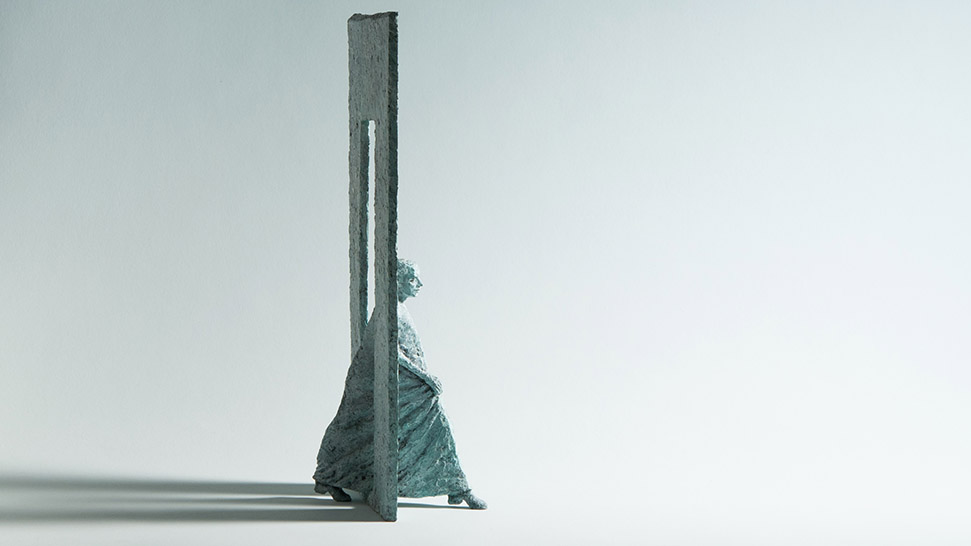 Die Bronzefigur der Künstlerin Annette Zappe zeigt eine Frau, die ein offenes Tor durchschreitet. In feierlichem Gewand, Zuversicht ausstrahlend, setzt sie freudig, noch halb schwebend den nächsten Schritt. Mit einem Fuß hat sie das Neuland schon berührt. Ihr Blick ist dabei in die Ferne gerichtet. Licht weist ihr den Weg.