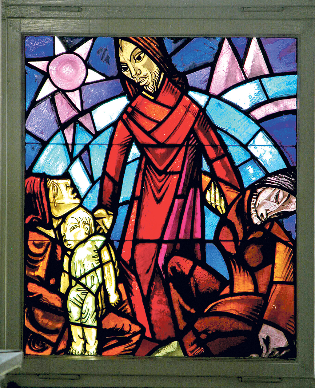Aber nicht immer findet sich solch überbordende Heldenverehrung und Idealisierung von Tod und Gewalt: Die expressionistischen Kirchenfenster des Künstlers Karl Muggly in der Bielefelder Jakobuskirche etwa stellen die Trauer um die Opfer die Krieges in den Vordergrund – eine weinende Frau mit einem Kind im Arm und ein erschöpfter Mann suchen hier in Jesu Armen Zuflucht.
