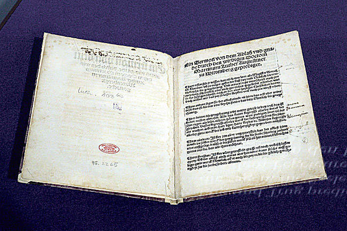 Seine 95 Thesen sandte Luther den Angaben zufolge unter anderem dem Mainzer Erzbischof Albrecht von Brandenburg. Zugleich kursierten in Luthers Umfeld einige Abschriften. Heute sind laut Staatsbibliothek nur noch sieben Exemplare der Thesendrucke aus Nürnberg und Leipzig bekannt. Zwei davon werden in Berlin aufbewahrt: Die Staatsbibliothek besitzt einen Druck aus Nürnberg, das Geheime Staatsarchiv einen aus Leipzig.