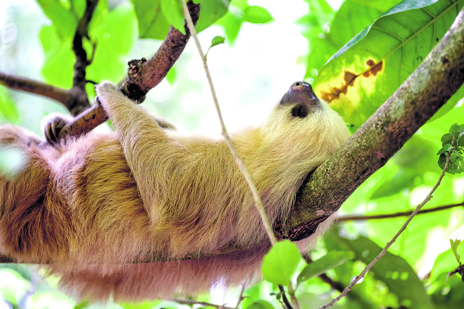 Seine Faulheit erweist sich bei näherem Hinsehen sogar als äußerst erfolgreiche Lebensstrategie. Die Evolution hat für das Faultier eine einfache Rechnung aufgemacht: Als reiner Blätteresser nimmt es nur Nahrung zu sich, die nicht besonders viel Energie liefert. Und letztere braucht man auch wenig, wenn man sich nicht viel bewegt. Was also wie Faulheit aussieht, ist ein raffinierter Energiesparmodus. Lieblingsspeise der Faultiere sind die Blätter der Ameisenbäume. Diese scheinen besonders schmackhaft zu sein, aber kein Tier traut sich an sie heran. Denn, wie der Name schon vermuten lässt, bieten diese Bäume Heimat für Ameisen, und die sind sehr aggressiv. Werden sie alarmiert, etwa dadurch, dass ein Affe in den Baum springt, stürzen sie sich auf ihn. Zwar nicht mit Gebrüll, aber heftig. Damit sind die Blätter geschützt. Im Gegenzug bietet der Baum den Ameisen Versteck und Pflanzensäfte. Es ist eine richtig schöne Symbiose.