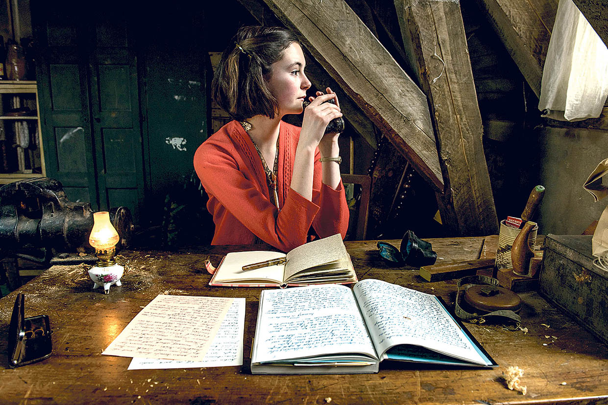 Bomber fliegen über das Versteck der Familie Frank in Amsterdam. Es ist dunkel, Möbel erzittern, Gläser klirren. Bei jeder neuen Explosion draußen krümmen sich die Menschen drinnen vor Angst. Eine Stimme aus dem Hintergrund sagt: „Irgendwann wird dieser schreckliche Krieg doch vorbeigehen. Seid mutig! Es wird einen Ausweg geben.“ Es ist die Stimme von Lea van Acken, die Anne Frank spielt.