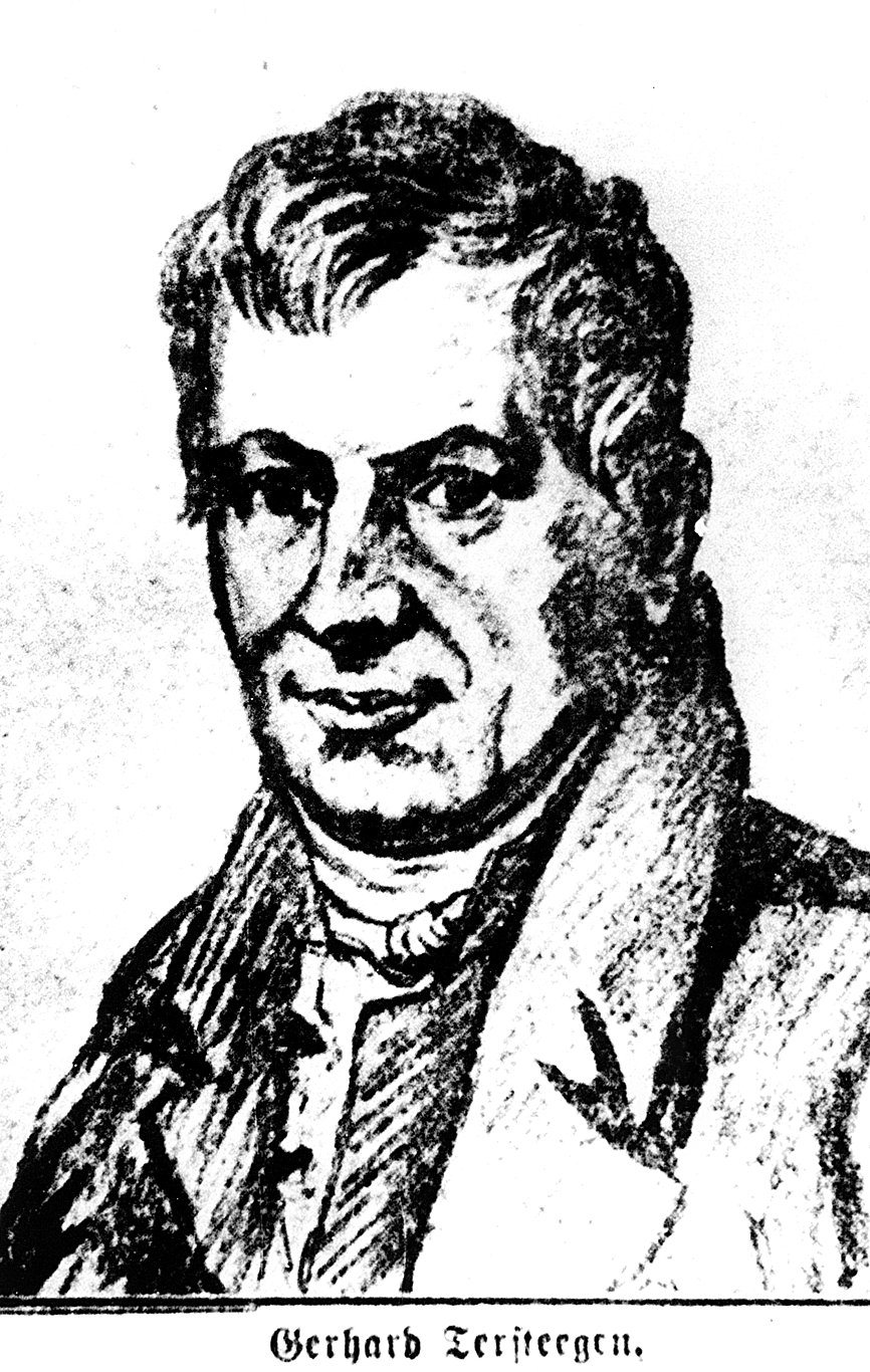 Das Leben Tersteegens lässt sich in zwei unterschiedliche Abschnitte einteilen: Im ersten lebte er zurückgezogen, im zweiten wirkte er öffentlich. Tersteegen wurde am 26. November 1697 in Moers am Niederrhein geboren. Er besuchte zunächst die Lateinschule, wo er sich die Grundlage für seine spätere, selbstständig erworbene theologische Bildung schuf.