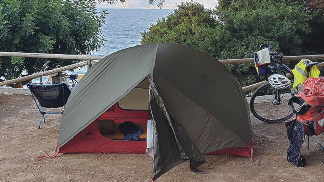 In Griechenland wird viel gebaut, etliche Straßen entstehen. Für Brandy wird es immer schwieriger, den Weg zu finden. Kurz vor der Peloponnes wird ihm das zum Verhängnis. Er steht vor einer gesperrten Straße, für die auch seine elektronischen Helfer nur eine Umleitung über die Autobahn oder das Meer finden. „Also habe ich mich am Bauzaun vorbei gemogelt und bin auf der durchaus fahrbaren Straße eine ganze Reihe von Kilometern gefahren.“ Mehrfach muss Brandy sein Rad über Gräben oder Betonabsperrungen heben. „Das war grenzwertig, ich bin froh, dass dem Rad nichts passiert ist“, schreibt er.