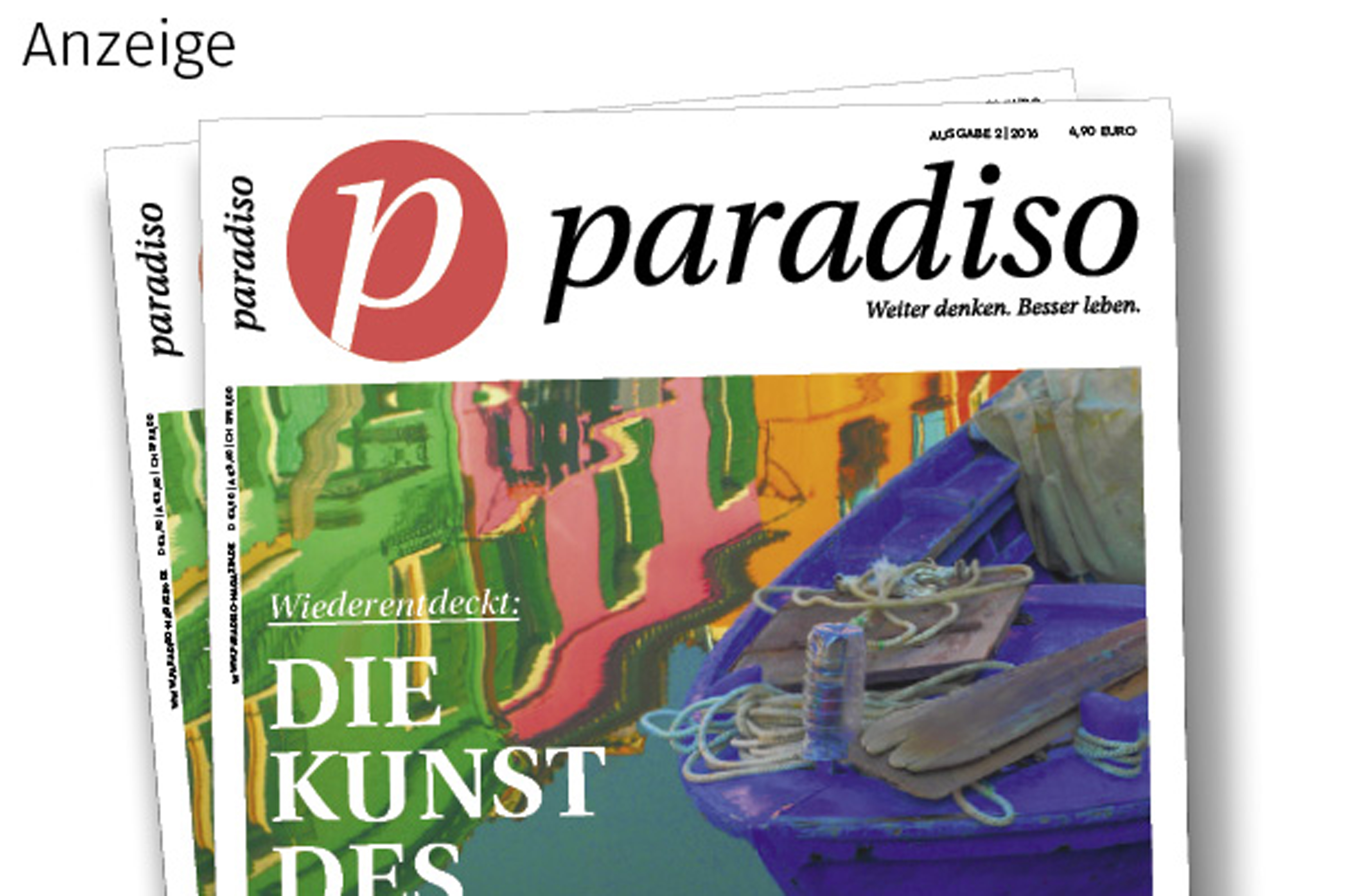 paradiso – das Magazin zum Entspannen, Weiterdenken, zur Sinnsuche. Diesmal mit dem Special „Die Kunst des Reisens“.