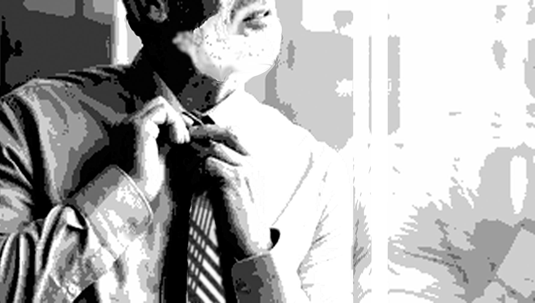 Seine Beine gleiten in die Stoffhose, sie sitzt ein bisschen locker. Er streift das Hemd über seinen mageren Körper und bindet sich sorgfältig die Krawatte. Seine Hände zupfen den Knoten der Krawatte noch einmal zurecht. Den Pullover stülpt er sich behutsam über seinen Oberkörper.
