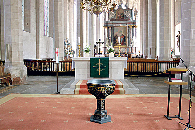 1543 wurde das Ganze nach diversen Querelen schließlich in ausführlichen Verträgen geregelt, im 19. Jahrhundert dann auch im Grundbuch festgehalten: Zwei Drittel der Kirche gehören den Protestanten, ein Drittel den Katholiken. 925 Plätzen stehen den Protestanten zu, 294 den Katholiken. Zudem gibt es nicht nur zwei Eingänge, sondern auch zwei Orgeln, zwei Sakristeien, zwei Altäre und unterschiedliche Kirchenbänke. Sichtbare Trennlinie ist bis heute das Gitter, das den Kirchenraum in evangelischen und katholischen Teil trennt. Noch im 19. Jahrhundert war es 4,50 Meter hoch. Doch in den 1950er Jahren wurde es nach kontroversen Diskussionen gekappt. Kurzzeitig wurde mit Blick auf 2017 erwogen, es ganz zu entfernen. Doch die Kirchenleitungen entschieden sich letztlich dagegen. „Da es ein geschichtliches Zeugnis ist und in seiner niedrigen Form auch nichts Trennendes hat", erläutert der Baupfleger der evangelisch-lutherischen Landeskirche Sachsens, Bernhard Preiß. „Außerdem: Die Leute wollen das Gitter sehen.“