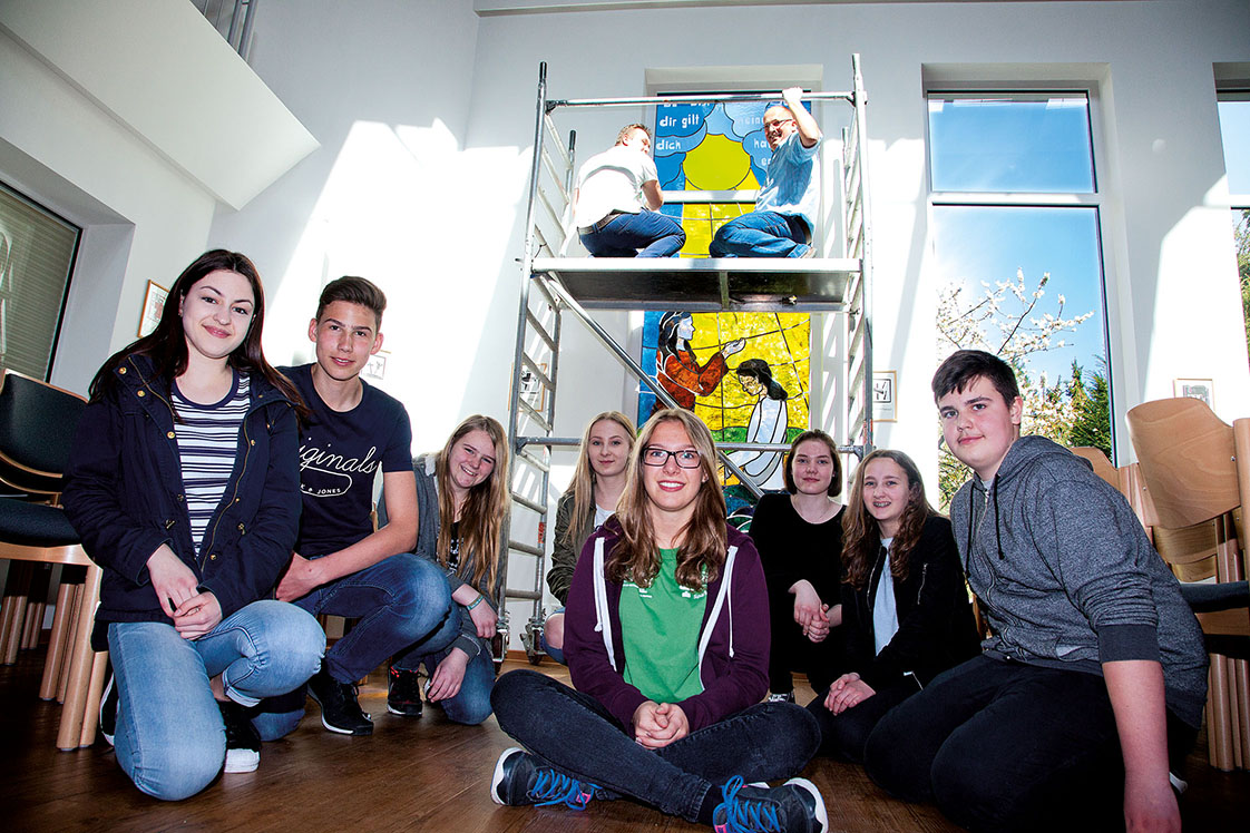 Die Konfirmanden entscheiden sich gegen den Film. „Für uns war klar, dass wir das Fenster gestalten wollen“, sagt Zoe. „Das ist toll, dass uns der Pfarrer und die Gemeinde so etwas zutrauen“, freut sich Leonie. Zoe ergänzt: „Man fühlt sich dadurch in die Gemeinde eingebunden, aufgenommen und willkommen.“