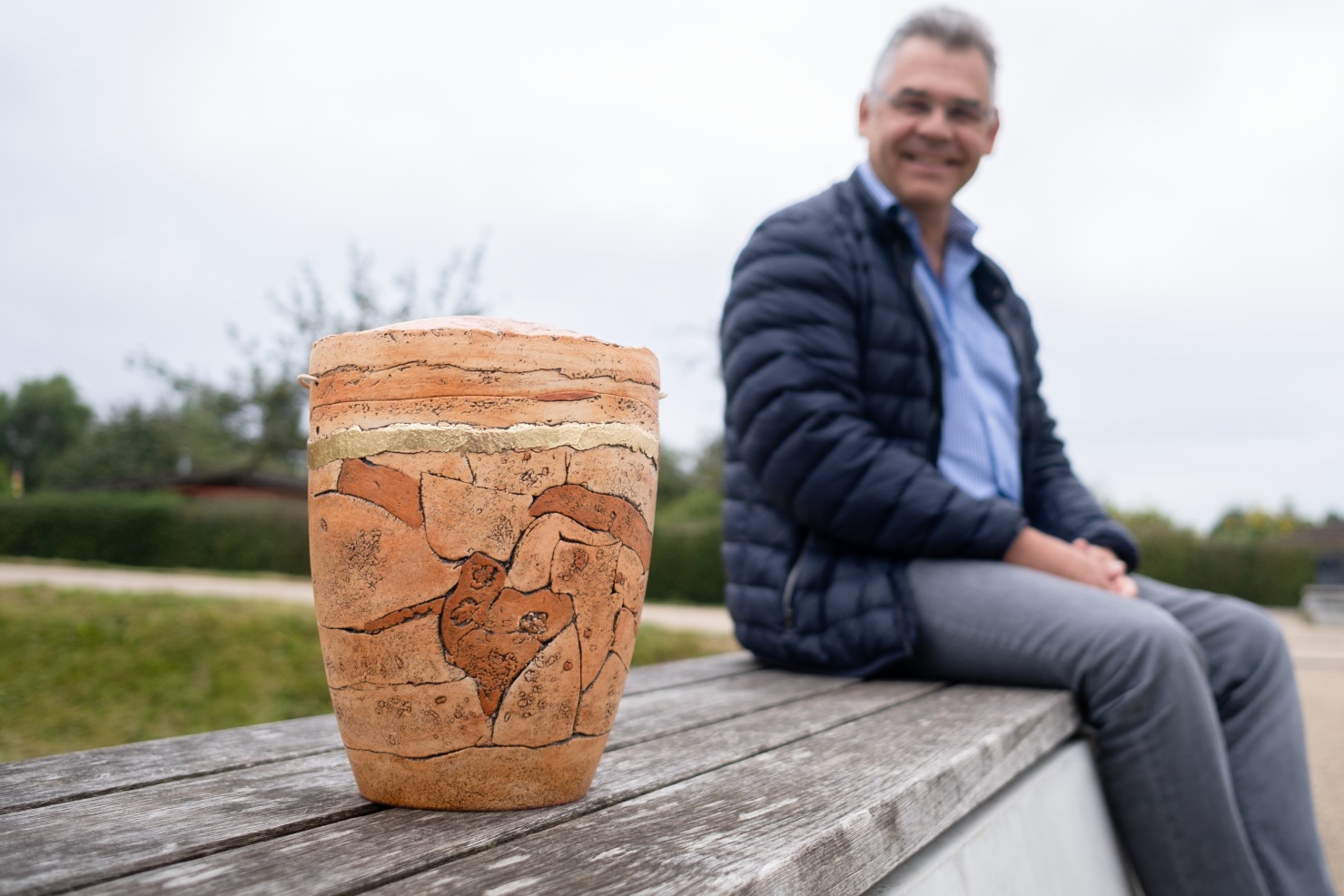 Gießen/Königswinter (epd). Im Wohnzimmer von Rüdiger Standhardt steht auf einem kleinen Wandschrank eine Urne, sandfarben mit Mustern, und wer genau hinguckt, entdeckt ein Herz. Standhardt hat die Urne selbst gestaltet. «Da werde ich mal drin sein», sagt der 59-Jährige und schmunzelt.